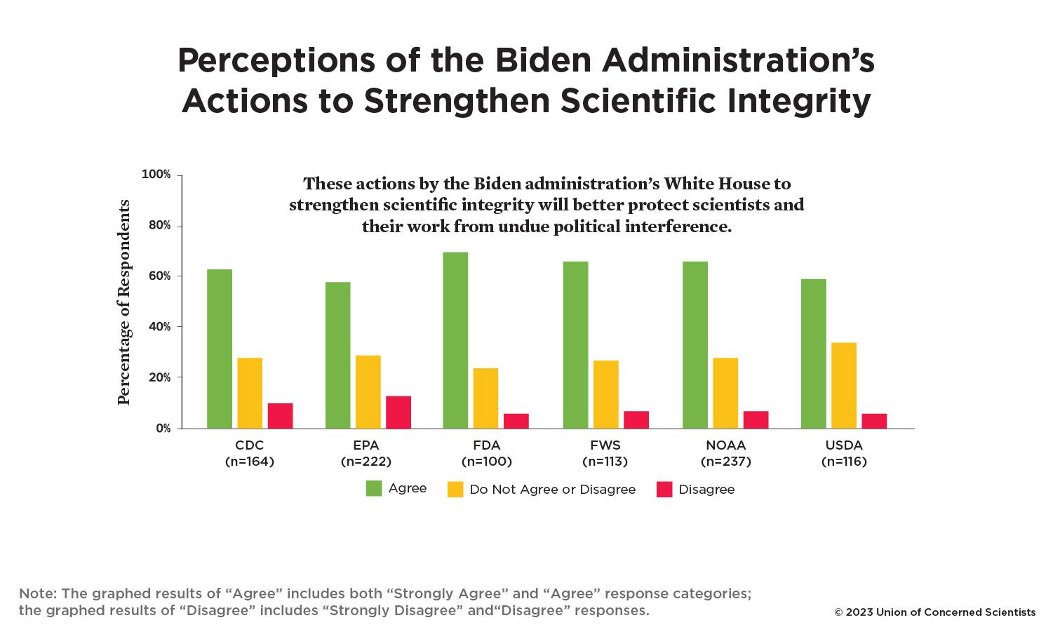 To protect the public's safety and health, the US government should base policies on the best available evidence—and that requires keeping the work of federal scientists free from political interference. Fortunately, the latest Union of Concerned Scientists survey of federal scientists shows the powerful, positive effects of strengthening scientific integrity policies under President Biden.